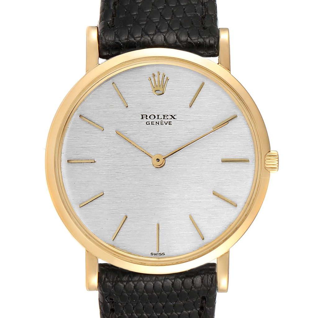 In conclusion, the Rolex Cellini 18k Yellow Gold Silver Dial Vintage Men’s Watch 9576 33MM is a masterpiece of watchmaking that is sure to impress anyone who appreciates fine watches. Its superior craftsmanship, rich history, and cultural significance make it a valuable addition to any watch collection.
